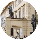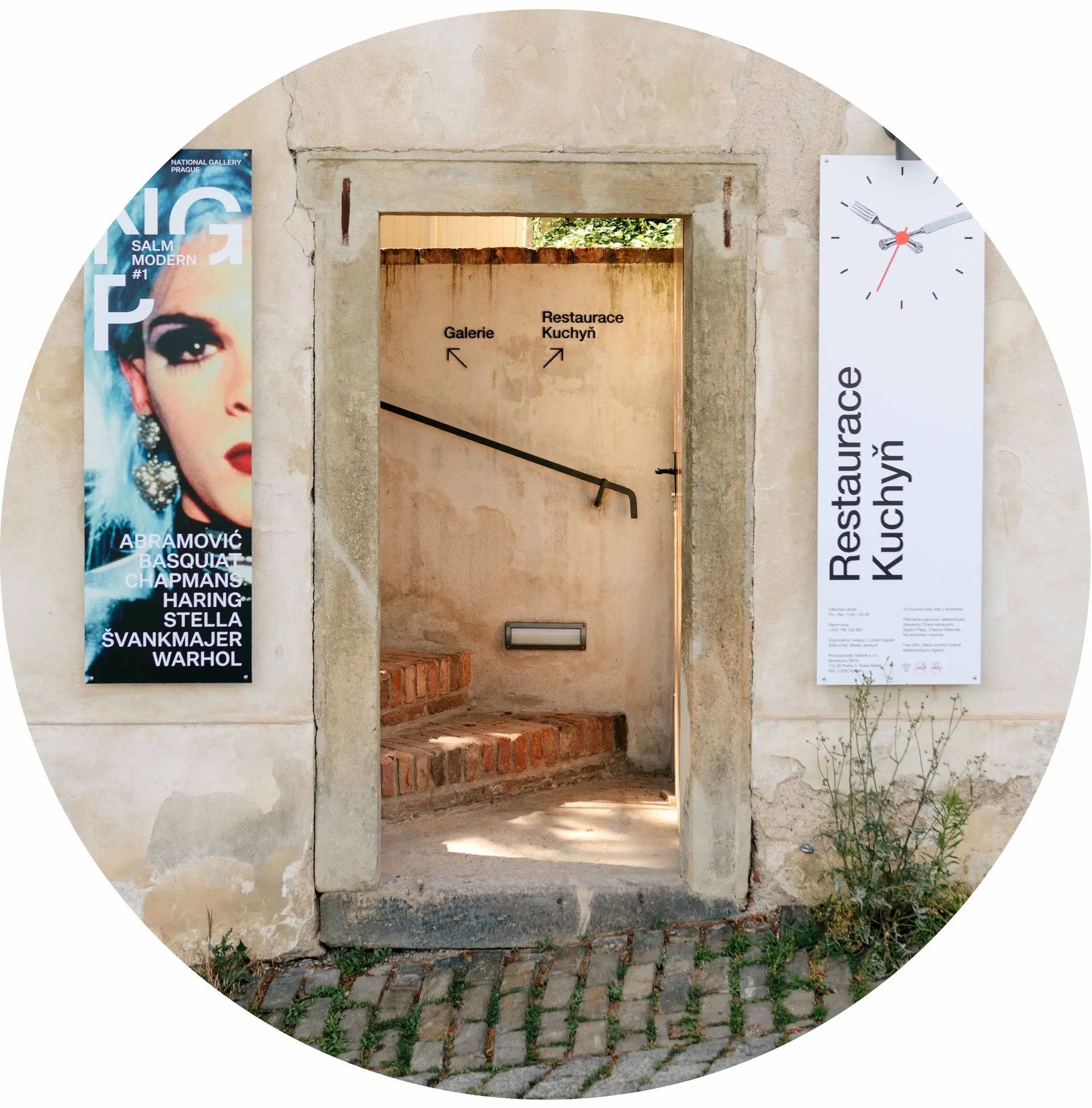 Guests enter Kuchyň through the terraces of Salm Palace, which can be reached from Ke Hradu Street or through the main entrance behind the statue of T.G. Masaryk.