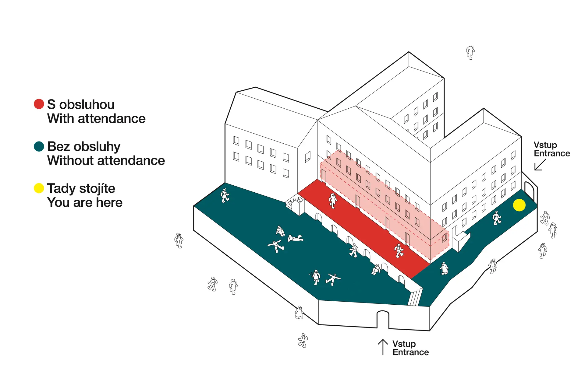 You are currently on the upper terrace of Kuchyň restaurant, which is unattended. If you wish to order food or drinks, please head to the outdoor bar, which can be found after the first set of stairs down on your right. Drinks will be given to you right away, food will be served to you based on the number you get from us.